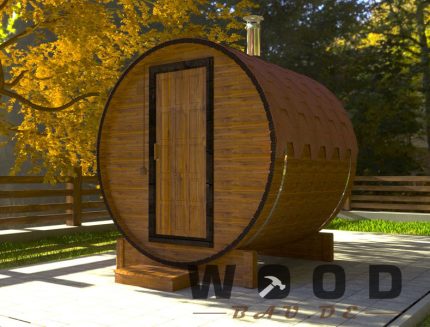Sie können Quadro-Sauna mit Elektro- oder Holzofen bestellen, die Länge/Durchmesser und innere Ausstattung nach Ihren Wunsch wählen sowie einen Duschraum, Terrasse oder Panoramafenster installieren.